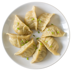 Jiaozi are filled with ground meat or vegetables and can be boiled, steamed, or pan-fried (potstickers).